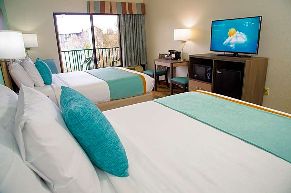 From the Parkway doorstep, an adults-only seasonal outdoor pool invites a refreshing dip, with beach chairs and river views creating easygoing spots to unwind after a day of exploring Pigeon Forge.